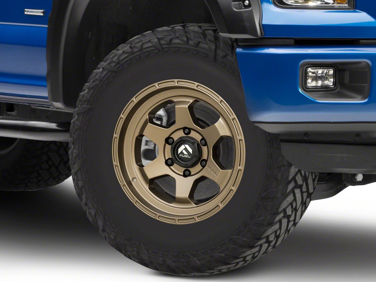 Application. This Fuel Wheels Shok Matte Bronze 6-Lug Wheel; 17x9; 1mm Offset, with a backspace of 5.039 Inch, 128mm and bolt pattern of 6 x 135mm (6 x 5.31-Inch), is designed to enhance alignment and driving stability, ensuring a perfect fit with the vehicle model. Specifically designed to fit 2015-20150 models, this wheel's specifications contribute to a seamless alignment and stable driving experience by ensuring the wheel fits perfectly within the vehicle's wheel well, reducing the risk of rubbing issues and optimizing handling characteristics. Sold individually.
