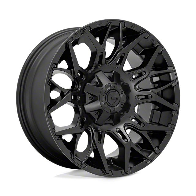 Fuel Wheels Twitch Blackout 6-Lug Wheel; 22x10; -18mm Offset The Fuel Wheels Twitch Blackout 6-Lug Wheel combines a sleek, sophisticated design with premium construction that enhances the visual appeal and complements a wide range of vehicle styles. This wheel is perfect for those seeking to make a bold statement while maintaining elegance and robustness.