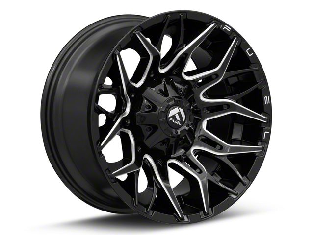 Fuel Wheels Twitch Glossy Black Milled 8-Lug Wheel; 22x10; -18mm Offset - Experience the sleek elegance of the Fuel Wheels wheel. Its matte black finish adds a touch of sophistication to your vehicle, enhancing its overall appearance without compromising on durability. Perfect for a variety of vehicle styles, this wheel is a testament to the brand's commitment to quality and aesthetic excellence.