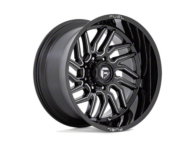 Fuel Wheels Hurricane Gloss Black Milled 8-Lug Wheel; 20x10; -18mm Offset The Fuel Wheels Hurricane Gloss Black Milled 8-Lug Wheel combines a sleek, sophisticated design with premium construction that enhances the visual appeal and complements a wide range of vehicle styles. This wheel is perfect for those seeking to make a bold statement while maintaining elegance and robustness.
