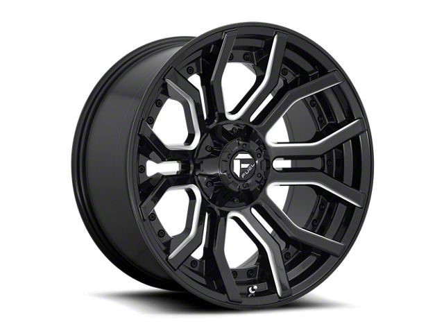 Fuel Wheels Rage Gloss Black Milled 8-Lug Wheel; 22x10; -18mm Offset offers a striking balance between style and durability. The design speaks to the brand's commitment to quality, enhancing the vehicle's appearance with its distinct look. This wheel, with its unique aesthetics, is ideal for drivers who appreciate a blend of modern design and robust functionality.
