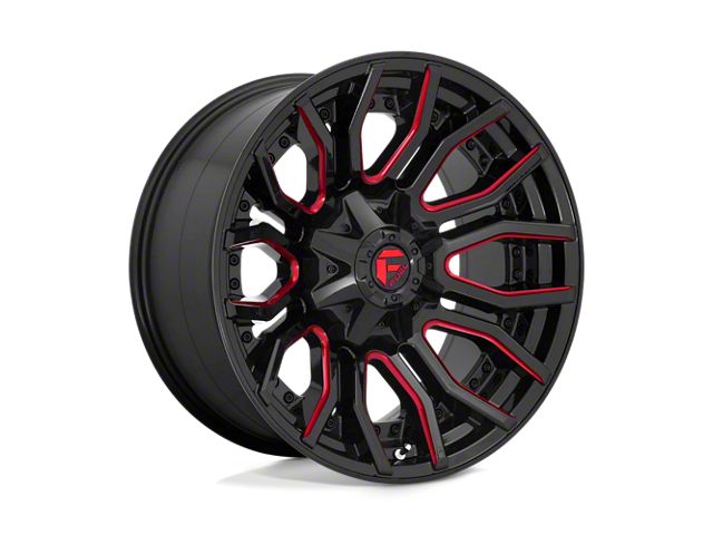 Fuel Wheels Rage Gloss Black with Red Tinted Clear 8-Lug Wheel; 20x10; -18mm Offset The Fuel Wheels Rage Gloss Black with Red Tinted Clear 8-Lug Wheel combines a sleek, sophisticated design with premium construction that enhances the visual appeal and complements a wide range of vehicle styles. This wheel is perfect for those seeking to make a bold statement while maintaining elegance and robustness.
