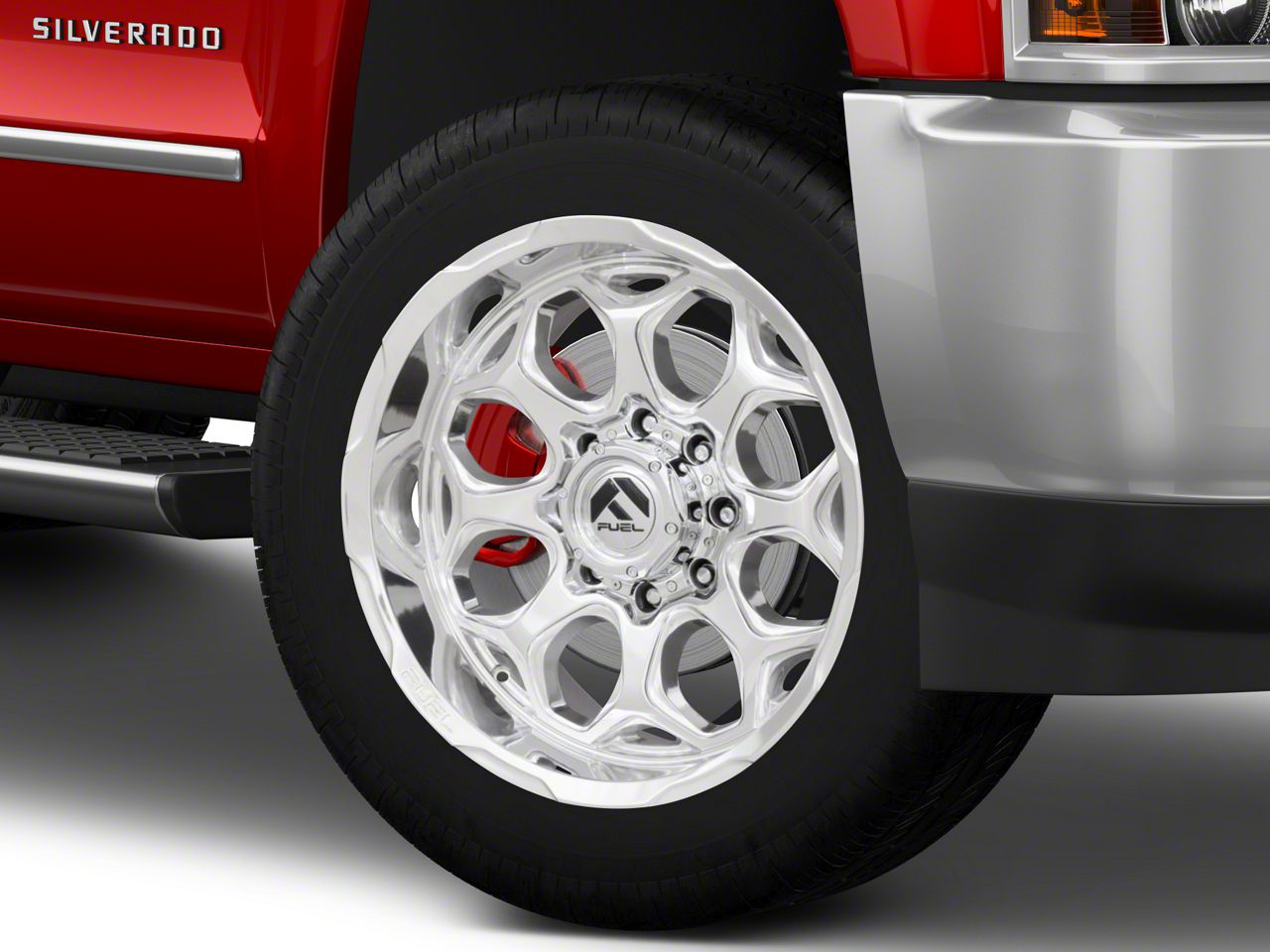 Fuel Wheels Scepter Polished Milled 8-Lug Wheel; 22x12; -44mm Offset. The Fuel Wheels Scepter Polished Milled 8-Lug Wheel offers a striking balance of style and refinement. Its unique design accentuates the vehicle's aesthetic, while the premium construction underscores its robust nature. This wheel is a perfect choice for those seeking both elegance and a strong visual statement.