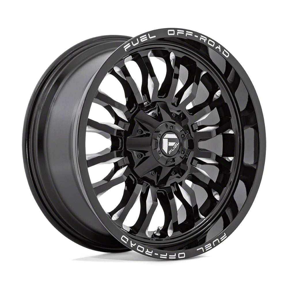 Fuel Wheels Arc Gloss Black Milled 8-Lug Wheel; 22x12; -44mm Offset The Fuel Wheels Arc Gloss Black Milled 8-Lug Wheel combines a sleek, sophisticated design with premium construction that enhances the visual appeal and complements a wide range of vehicle styles. This wheel is perfect for those seeking to make a bold statement while maintaining elegance and robustness.
