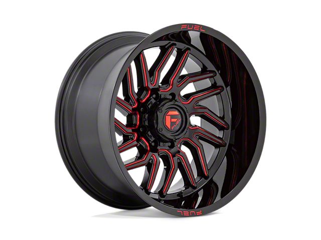 Fuel Wheels Hurricane Gloss Black Milled with Red Tint 8-Lug Wheel; 20x10; -18mm Offset The Fuel Wheels Hurricane Gloss Black Milled with Red Tint 8-Lug Wheel combines a sleek, sophisticated design with premium construction that enhances the visual appeal and complements a wide range of vehicle styles. This wheel is perfect for those seeking to make a bold statement while maintaining elegance and robustness.
