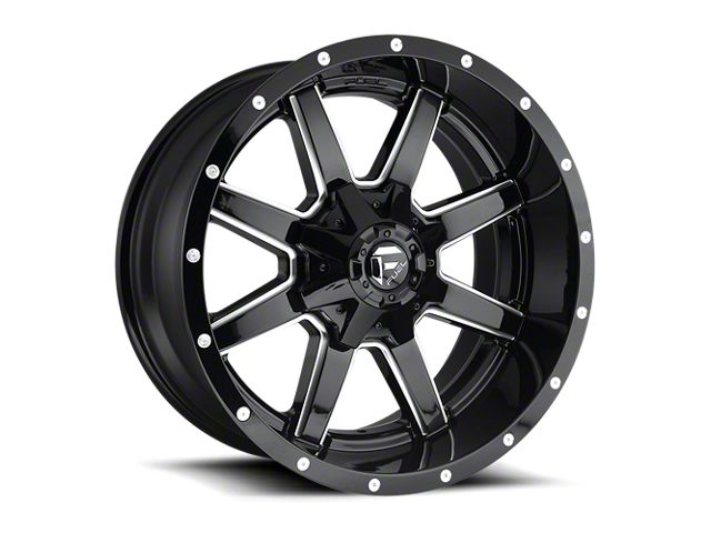 This 20x9 Fuel Wheels Maverick Gloss Black Milled 8-Lug Wheel is completed in a high-quality gloss black finish with steel milled accents that will create a striking appearance. There's a durable clear coat that protects against driving hazards.