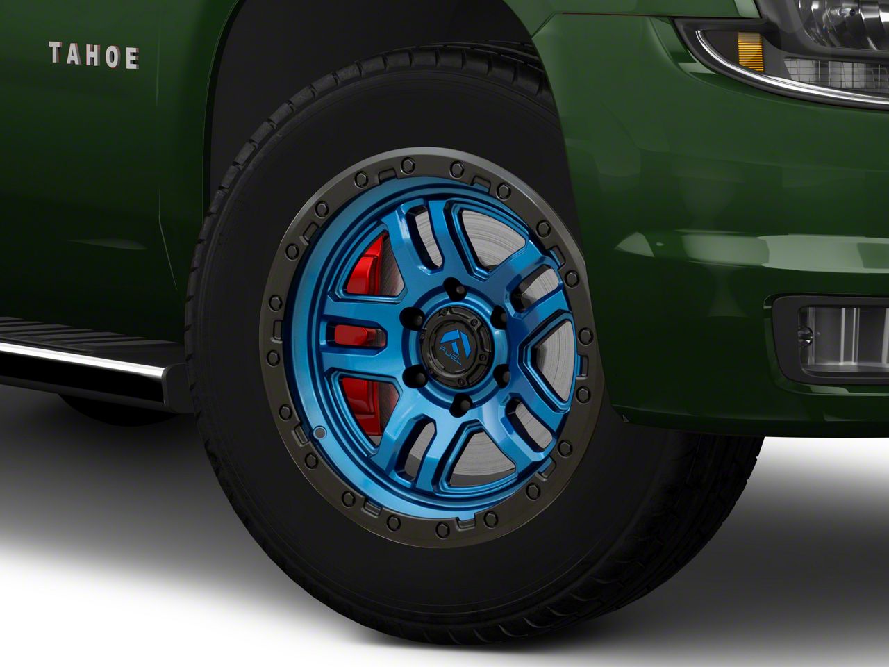 Application. This Fuel Wheels Ammo Gloss Blue with Black Bead Ring 6-Lug Wheel; 20x10; -18mm Offset, with a backspace of 4.792 Inch, 121.8mm; and bolt pattern of 6 x 139.7mm (6 x 5.5-Inch), ensures precise alignment and unwavering stability. Designed to fit the 202015-202020 Tahoe models, it stands out as a tailored enhancement. Sold individually.