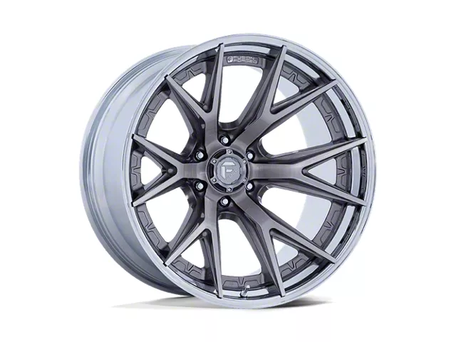 The 24x12 Fuel Wheels Fusion Forged Catalyst Platinum with Chrome Lip 6-Lug Wheel; 24x12; -44mm Offset is completed in a high quality platinum finish with a bright chrome lip for striking contrast in appearance that everyone will envy.
