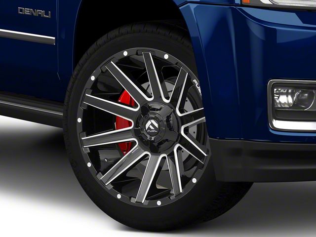 Application. This Fuel Wheels Contra Gloss Black Milled 6-Lug Wheel; 22x12; -43mm Offset with a backspace of 4.82008 Inch, 122.2mm and bolt pattern of 6 x 139.7mm (6 x 5.5-Inch) ensures impeccable alignment and driving stability. It's designed to fit the 2015-2020 Yukon models, sold individually.Fuel Wheels D61522209846