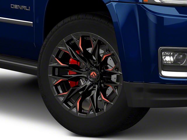 Fuel Wheels Flame Gloss Black Milled with Red Accents 6-Lug Wheel; 20x9 exudes an aesthetic allure that complements a range of vehicle styles. With its design rooted in Fuel Wheels craftsmanship, this wheel accentuates your vehicle's elegant stance.