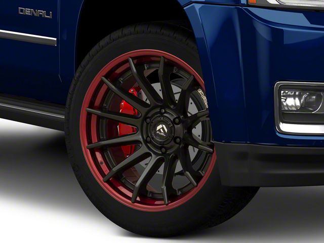 Fuel Wheels Fusion Forged Burn Matte Black with Candy Red Lip 6-Lug Wheel; 24x12; -44mm Offset - Experience the sleek elegance of the Fuel Wheels wheel. Its matte black finish adds a touch of sophistication to your vehicle, enhancing its overall appearance without compromising on durability. Perfect for a variety of vehicle styles, this wheel is a testament to the brand's commitment to quality and aesthetic excellence.