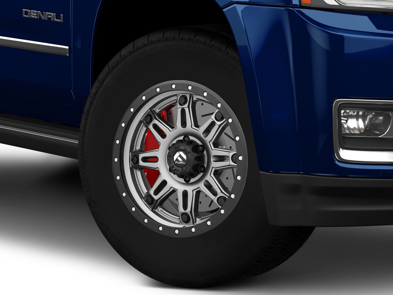 Application. This Fuel Wheels Hostage III Anthracite with Black Ring 6-Lug Wheel; 17x9; 1mm Offset with a backspace of 5.04 Inch, 128.1mm; and bolt pattern of 6 x 139.7mm (6 x 5.5-Inch) contributes to impeccable alignment and driving stability. Designed to fit 202015-202020 Yukon models, sold individually.