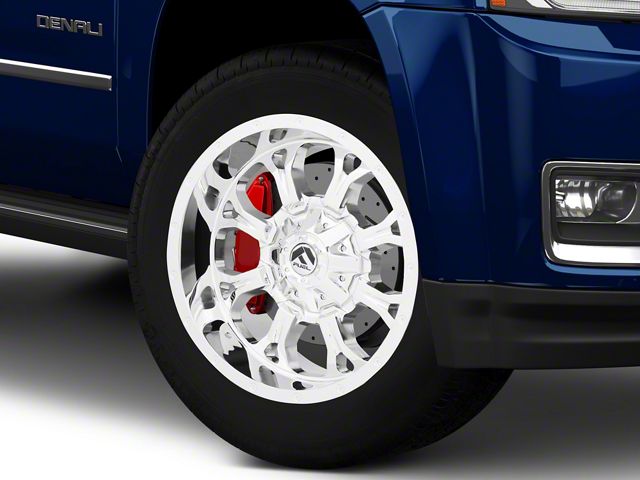 The 20x10 Fuel Wheels Krank Chrome 6-Lug Wheel; ; -24mm Offset has a chrome finish that is accomplished in a 3-step plating process that includes copper, nickel and chrome.