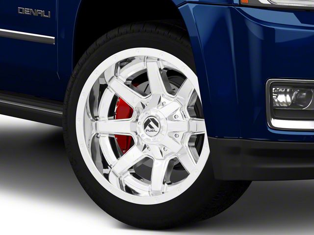 Fuel Wheels Maverick Chrome 6-Lug Wheel; 22x9.5; 20mm Offset The Fuel Wheels Maverick Chrome 6-Lug Wheel combines a sleek, sophisticated design with premium construction that enhances the visual appeal and complements a wide range of vehicle styles. This wheel is perfect for those seeking to make a bold statement while maintaining elegance and robustness.