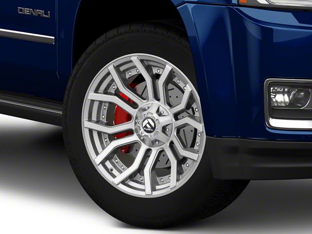 Fuel Wheels Rage Platinum Brushed Gunmetal 6-Lug Wheel; 20x10; -18mm Offset exudes a captivating aesthetic appeal that seamlessly complements various vehicle styles. The craftsmanship of Fuel Wheels ensures a robust and premium feel, making it a standout choice for discerning drivers.