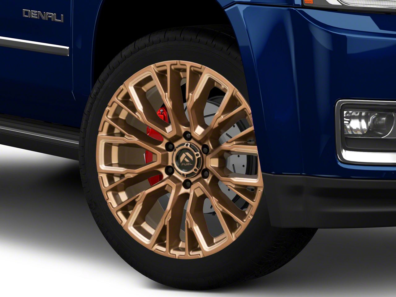 Application. This Fuel Wheels Rebar Platinum Bronze Milled 6-Lug Wheel; 22x12; -44mm Offset, with a backspace of 4.768 Inch, 121.1mm; and bolt pattern of 6 x 139.7mm (6 x 5.5-Inch), is designed to fit the 2015-2020 Yukon . The precise specifications of the wheel ensure proper alignment and driving stability, perfectly complementing the vehicle's model. Sold individually.