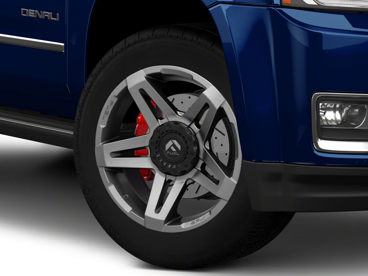 The 20x12 Fuel Wheels SFJ Matte Gunmetal 6-Lug Wheel is completed in a high-quality gunmetal gray finish for an aggressive appearance that will turn heads. There is a durable clear coat that withstands the rigors of daily driving.