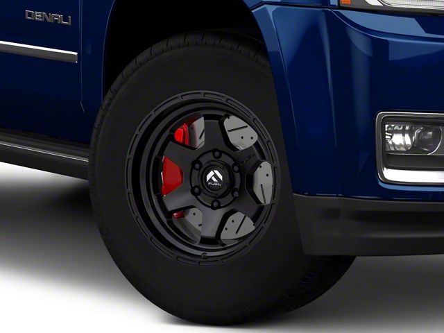 Fuel Wheels Shok Matte Black 6-Lug Wheel; 17x10; -18mm Offset. The Fuel Wheels Shok Matte Black 6-Lug Wheel offers a striking balance of style and refinement. Its unique design accentuates the vehicle's aesthetic, while the premium construction underscores its robust nature. This wheel is a perfect choice for those seeking both elegance and a strong visual statement.