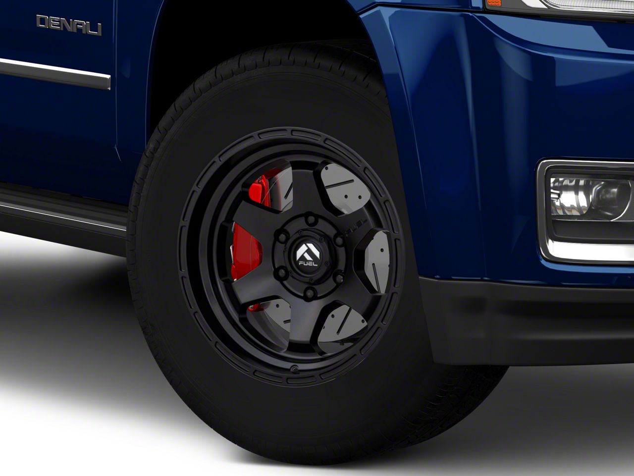 Fuel Wheels Shok Matte Black 6-Lug Wheel; 18x9; 1mm Offset. The Fuel Wheels Shok Matte Black 6-Lug Wheel offers a striking balance of style and refinement. Its unique design accentuates the vehicle's aesthetic, while the premium construction underscores its robust nature. This wheel is a perfect choice for those seeking both elegance and a strong visual statement.