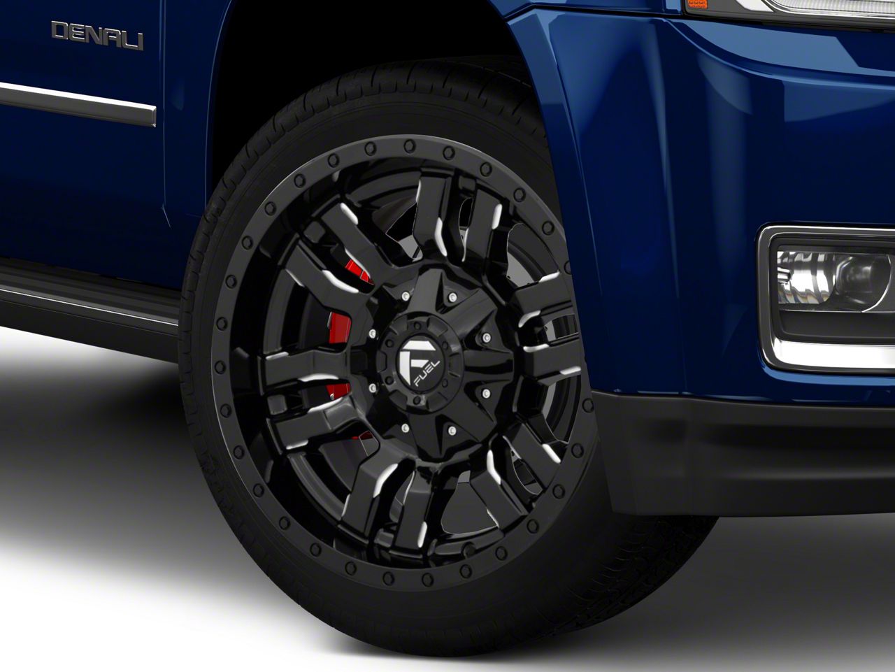 Application. This Fuel Wheels Sledge Gloss Black Milled 6-Lug Wheel; 22x9.5; 19mm Offset, with a backspace of 5.998 Inch, 152.3mm; and bolt pattern of 6 x 139.7mm (6 x 5.5-Inch), is designed to fit the 2015-2020 Yukon . The precise specifications of the wheel ensure proper alignment and driving stability, perfectly complementing the vehicle's model. Sold individually.