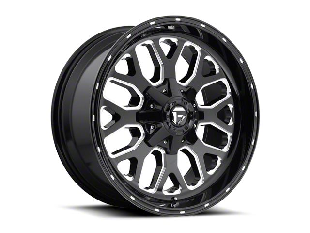 The 20x9 Fuel Wheels Titan Gloss Black Milled 6-Lug Wheel is completed in a high-quality gloss black finish, with steel milled accents. Thanks to a durable clear coat, the finish looks amazing and also protects against the rigors of driving.