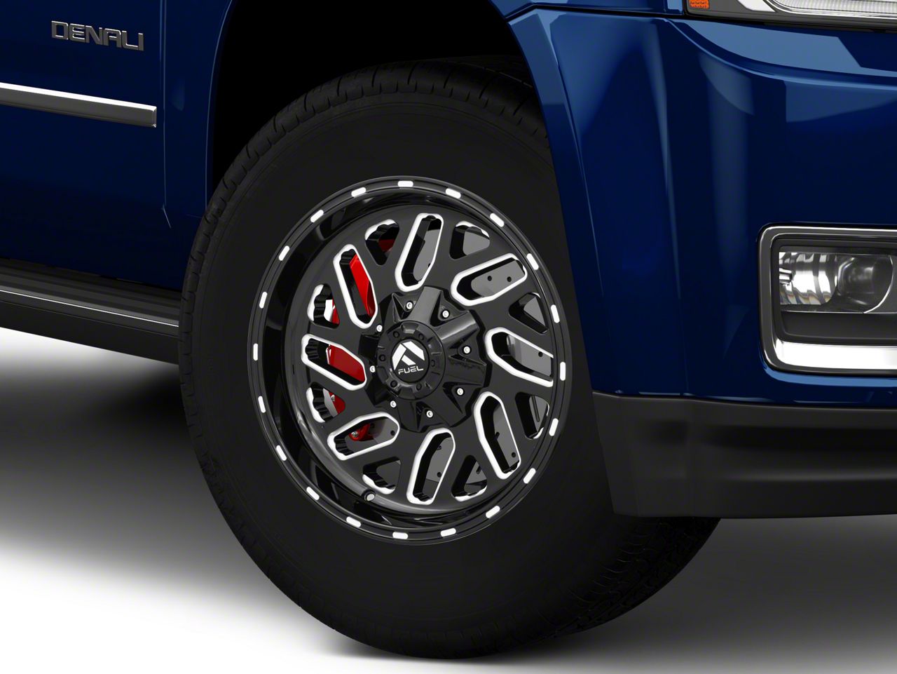 Application. This Fuel Wheels Triton Gloss Black Milled 6-Lug Wheel; 17x9; -12mm Offset with a backspace of 4.528 Inch, 115.1mm and bolt pattern of 6 x 139.7mm (6 x 5.5-Inch) is meticulously engineered to enhance alignment and driving stability. It is designed to fit 2015-2020 Yukon models. Sold individually.