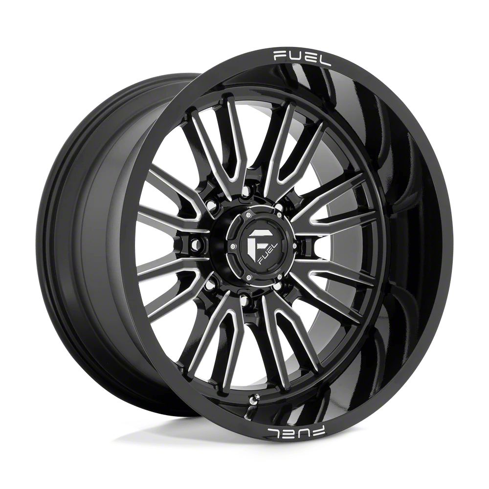Fuel Wheels Clash Gloss Black Milled 8-Lug Wheel; 22x12; -44mm Offset The Fuel Wheels Clash Gloss Black Milled 8-Lug Wheel combines a sleek, sophisticated design with premium construction that enhances the visual appeal and complements a wide range of vehicle styles. This wheel is perfect for those seeking to make a bold statement while maintaining elegance and robustness.