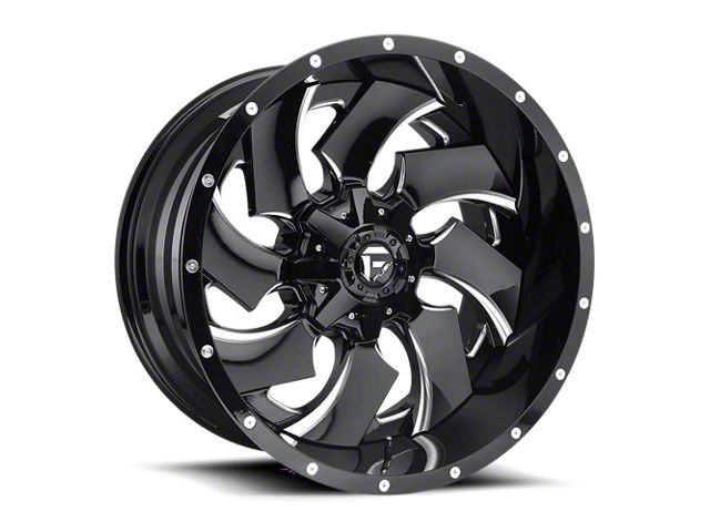 Fuel Wheels Cleaver Gloss Black Milled 8-Lug Wheel; 20x14; -75mm Offset The Fuel Wheels Cleaver Gloss Black Milled 8-Lug Wheel combines a sleek, sophisticated design with premium construction that enhances the visual appeal and complements a wide range of vehicle styles. This wheel is perfect for those seeking to make a bold statement while maintaining elegance and robustness.