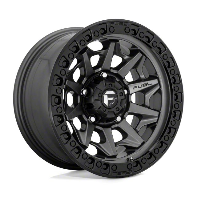 Fuel Wheels Covert Matte Gunmetal with Black Bead Ring 8-Lug Wheel; 18x9; 1mm Offset The Fuel Wheels Covert Matte Gunmetal with Black Bead Ring 8-Lug Wheel combines a sleek, sophisticated design with premium construction that enhances the visual appeal and complements a wide range of vehicle styles. This wheel is perfect for those seeking to make a bold statement while maintaining elegance and robustness.