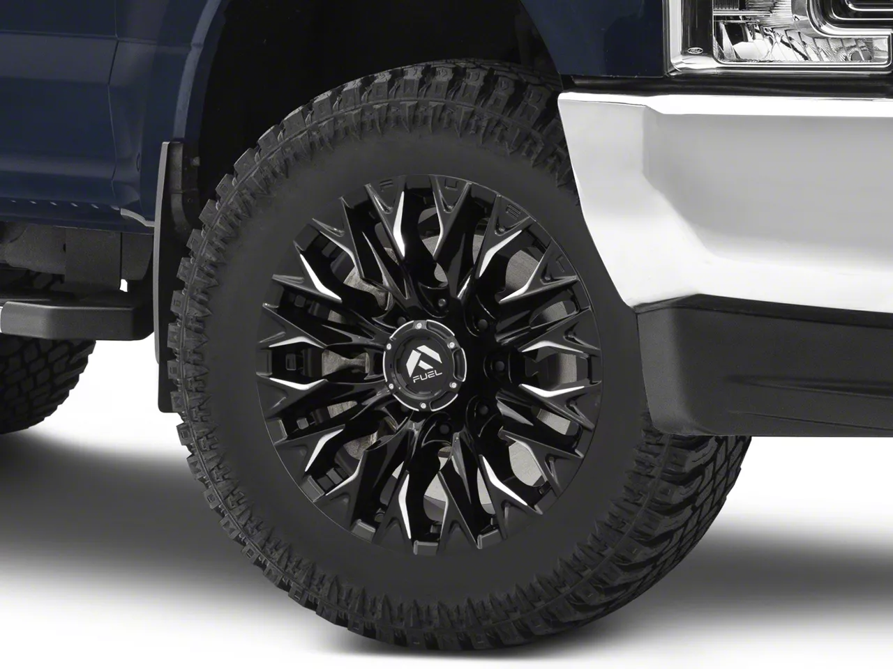 Fuel Wheels Flame Gloss Black Milled 8-Lug Wheel; 20x10; -18mm Offset Enhance your vehicle's style with the Fuel Wheels Flame Gloss Black Milled 8-Lug Wheel; 20x10; -18mm Offset. Its distinctive design and finish radiate a premium feel, perfectly complementing a range of vehicle styles without compromising on robustness. It's an ideal choice for those seeking to elevate their vehicle's aesthetic appeal.