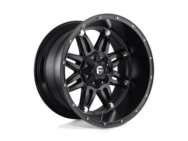 Fuel Wheels Hostage Matte Black 8-Lug Wheel; 22x12; -44mm Offset The Fuel Wheels Hostage Matte Black 8-Lug Wheel combines a sleek, sophisticated design with premium construction that enhances the visual appeal and complements a wide range of vehicle styles. This wheel is perfect for those seeking to make a bold statement while maintaining elegance and robustness.