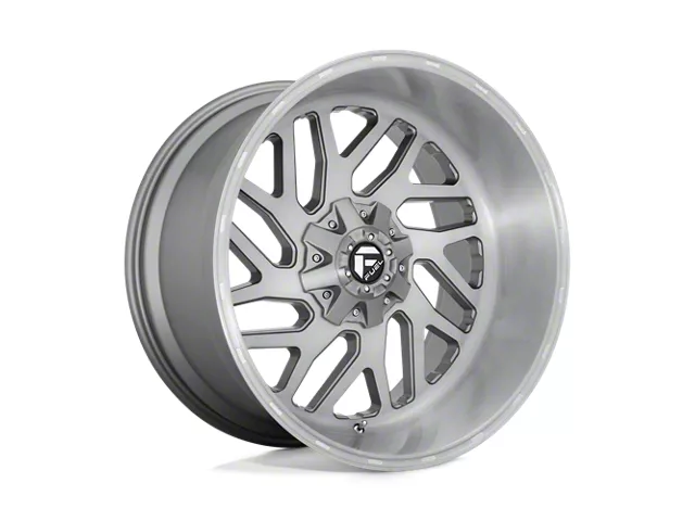 Fuel Wheels Triton Platinum Brushed Gunmetal with Tinted Clear 8-Lug Wheel; 20x12; -43mm Offset The Fuel Wheels Triton Platinum Brushed Gunmetal with Tinted Clear 8-Lug Wheel combines a sleek, sophisticated design with premium construction that enhances the visual appeal and complements a wide range of vehicle styles. This wheel is perfect for those seeking to make a bold statement while maintaining elegance and robustness.