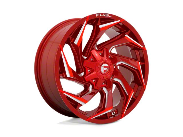 Fuel Wheels Reaction Candy Red Milled 8-Lug Wheel; 20x9; 20mm Offset The Fuel Wheels Reaction Candy Red Milled 8-Lug Wheel combines a sleek, sophisticated design with premium construction that enhances the visual appeal and complements a wide range of vehicle styles. This wheel is perfect for those seeking to make a bold statement while maintaining elegance and robustness.