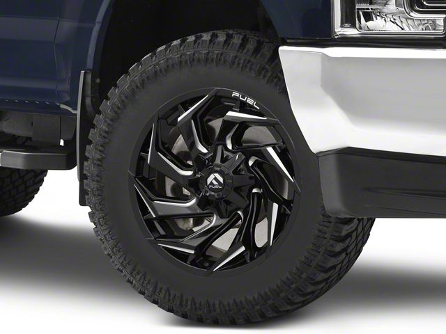 Fuel Wheels Reaction Gloss Black Milled 8-Lug Wheel; 20x9; 20mm Offset The Fuel Wheels Reaction Gloss Black Milled 8-Lug Wheel combines a sleek, sophisticated design with premium construction that enhances the visual appeal and complements a wide range of vehicle styles. This wheel is perfect for those seeking to make a bold statement while maintaining elegance and robustness.