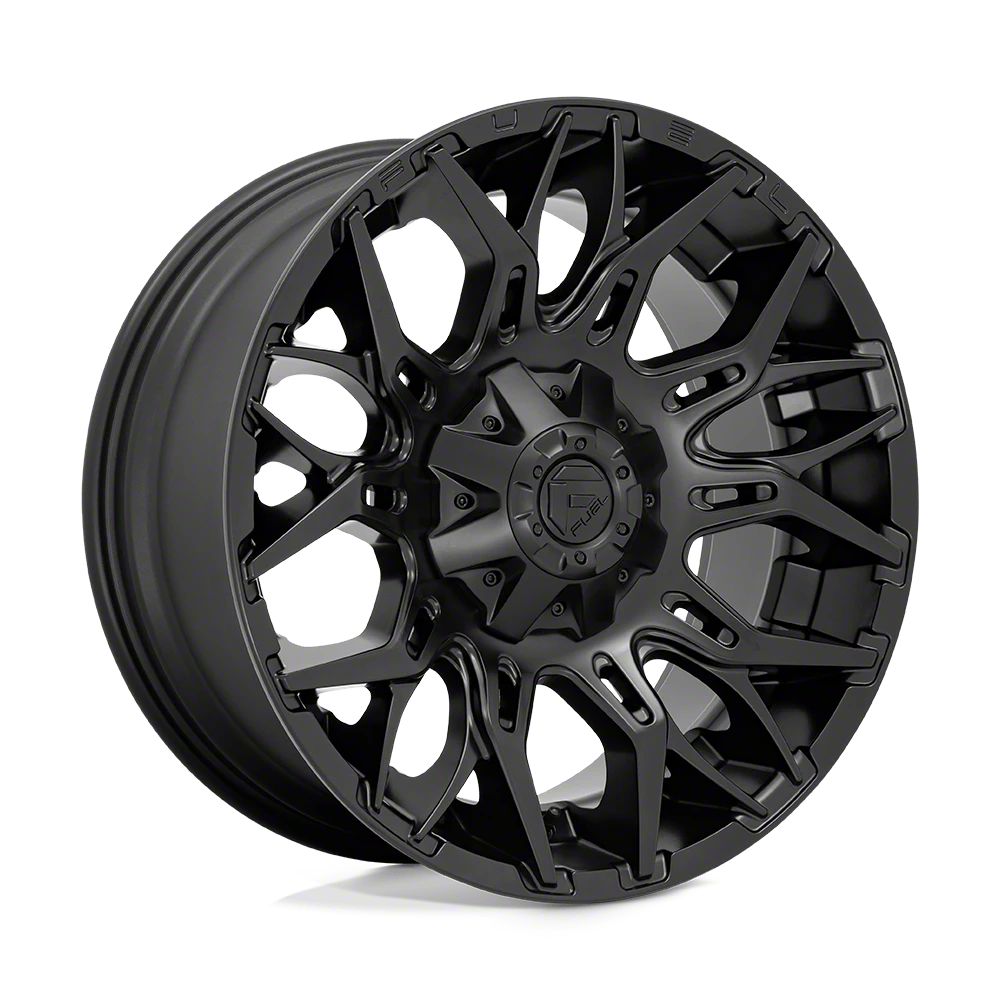 Fuel Wheels Twitch Blackout 8-Lug Wheel; 20x10; -18mm Offset The Fuel Wheels Twitch Blackout 8-Lug Wheel combines a sleek, sophisticated design with premium construction that enhances the visual appeal and complements a wide range of vehicle styles. This wheel is perfect for those seeking to make a bold statement while maintaining elegance and robustness.