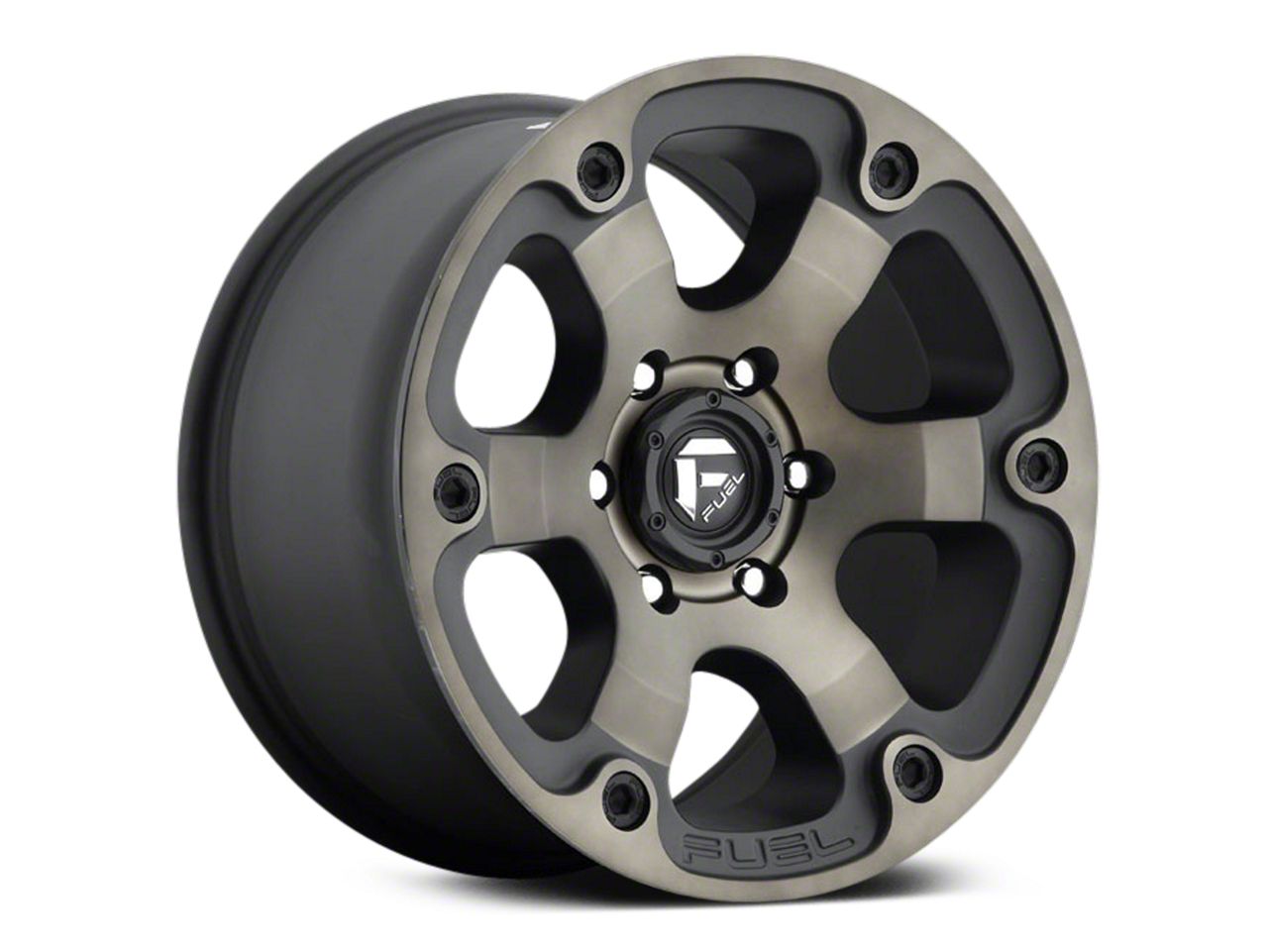Fuel Wheels Beast Matte Black Machined with Dark Tint 6-Lug Wheel; 17x9; -12mm Offset exudes a sleek aesthetic appeal, complementing a range of vehicle styles. Its dark stainless finish emanates sophistication, while the brand reputation of Fuel Wheels ensures robustness. This wheel seamlessly merges elegance with durability.