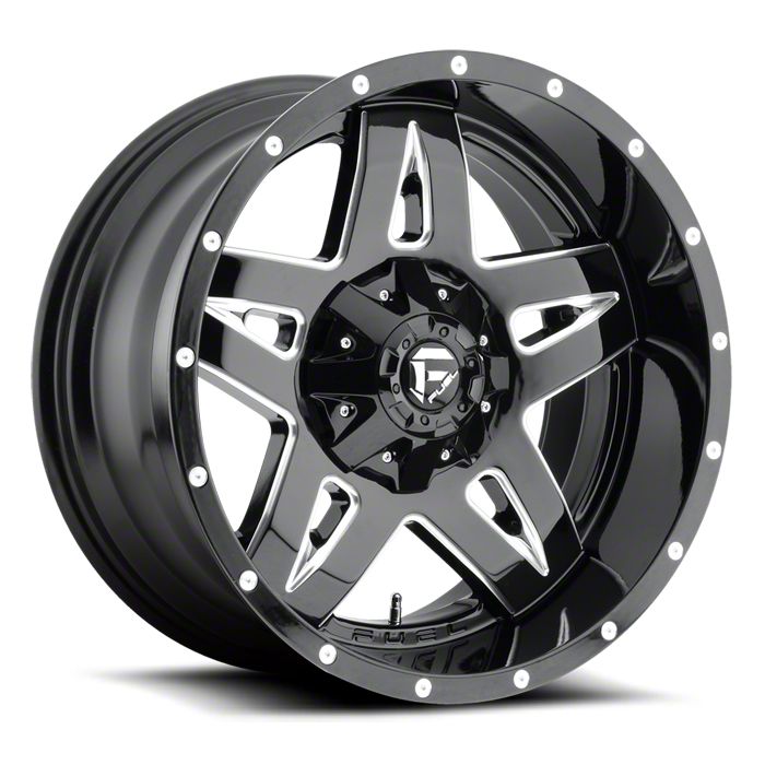 This 18x9 Fuel Wheels Full Blown Gloss Black Milled 6-Lug Wheel is completed in a high-quality gloss black finish with steel milled accents that will be the envy of everyone. There's a durable clear coat that protects against driving hazards.