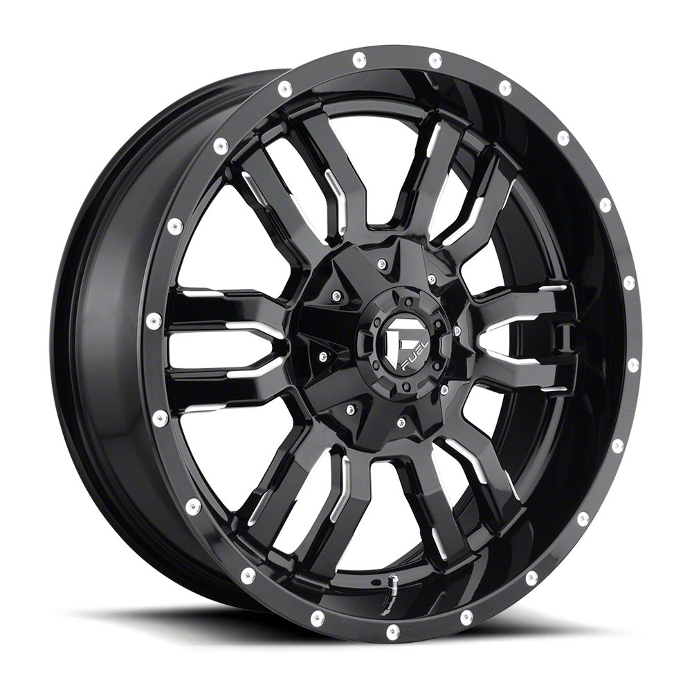 Fuel Wheels Sledge Gloss Black Milled 6-Lug Wheel; 20x9; 1mm Offset The Fuel Wheels Sledge Gloss Black Milled 6-Lug Wheel showcases a blend of race-inspired aesthetics, ideal for those seeking a premium and robust appearance. Its design complements various vehicle styles, adding sophistication.