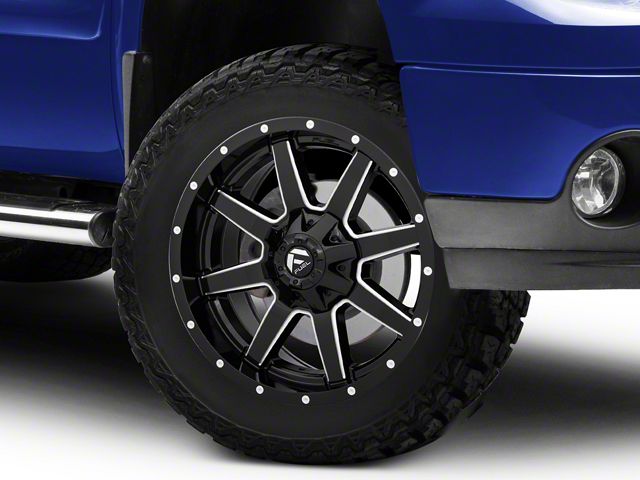 The 20x9 Fuel Wheels Maverick Gloss Black Milled 6-Lug Wheel is given a gloss black finish to keep the wheel looking as sharp as its design. This wheel's milled steel accents are really where it shines through, and quite literally. It makes the split section of the spokes pop along the faux beadlock.