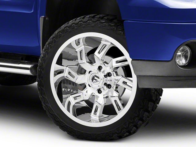 The 22x10 Fuel Wheels Lockdown Chrome 6-Lug Wheel has a chrome finish that is accomplished in a 3-step plating process - copper, nickel, then chrome.