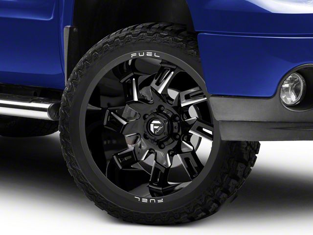 The 22x10 Fuel Wheels Lockdown Gloss Black Milled 6-Lug Wheel is completed in a high-quality gloss black finish, with steel milled accents. Thanks to a durable clear coat, the finish looks amazing and also protects against the rigors of driving.