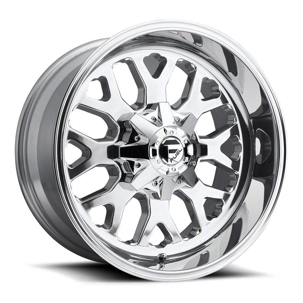 Fuel Wheels Titan Polished 8-Lug Wheel; 20x9; 20mm Offset exudes sophistication with its finish, offering a sleek and modern appeal to any vehicle it adorns. The design is meticulously crafted to enhance the aesthetic of your vehicle, giving it a distinctive and upscale look. Perfect for those seeking to elevate their vehicle's style, this wheel blends seamlessly with both contemporary and classic vehicle designs, making it a versatile choice for a wide range of vehicles. Its robust construction ensures durability, making it a reliable choice for drivers who value both style and quality.