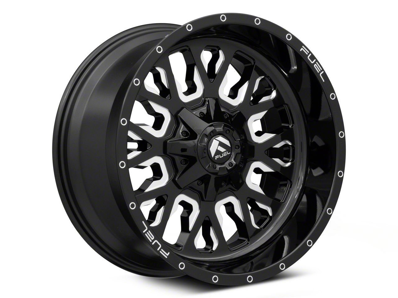 This 20x9 Fuel Wheels Stroke Gloss Black Milled 8-Lug Wheel is completed in a high-quality gloss black finish with steel milled accents that will create a striking appearance. There's a durable clear coat that protects against driving hazards.