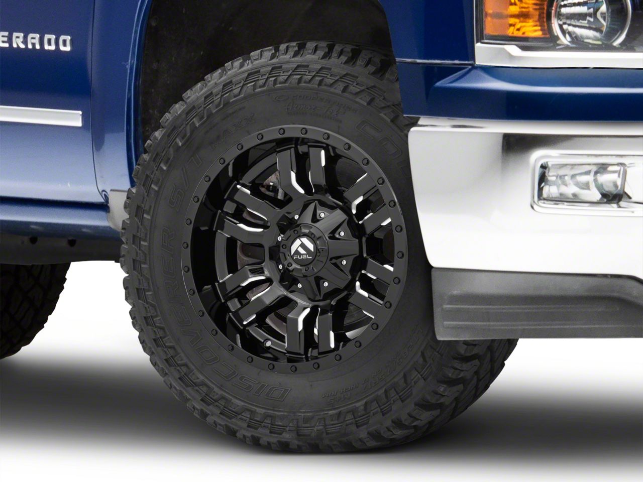Application. This Fuel Wheels Sledge Gloss Black Milled 6-Lug Wheel; 17x9; 1mm Offset with a backspace of 5.04 Inch, 128.1mm; and bolt pattern of 6 x 139.7mm (6 x 5.5-Inch) contributes to impeccable alignment and driving stability. Designed to fit 2014-2018 Silverado 1500 models, sold individually.