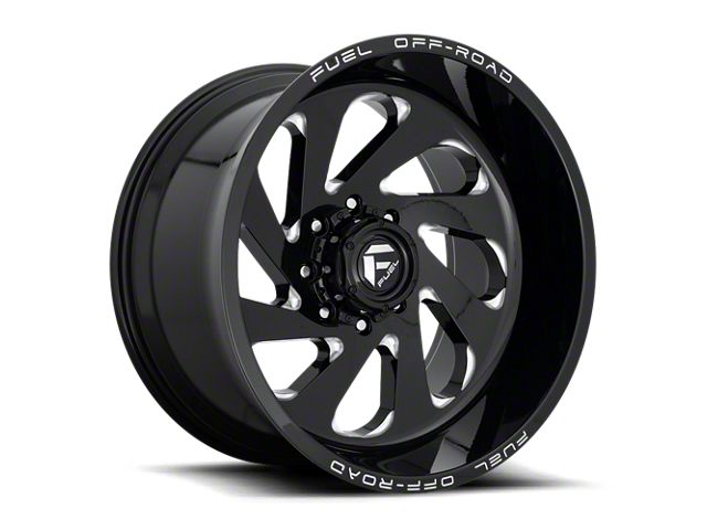 Fuel Wheels Vortex Gloss Black Milled 8-Lug Wheel; 20x10; -18mm Offset - This wheel's elegant design will certainly enhance your vehicle's aesthetic, complementing its luxury and performance. The unique styling of this wheel makes it an ideal choice for a standout quality of your ride, reflecting the premium quality associated with the Fuel Wheels brand.
