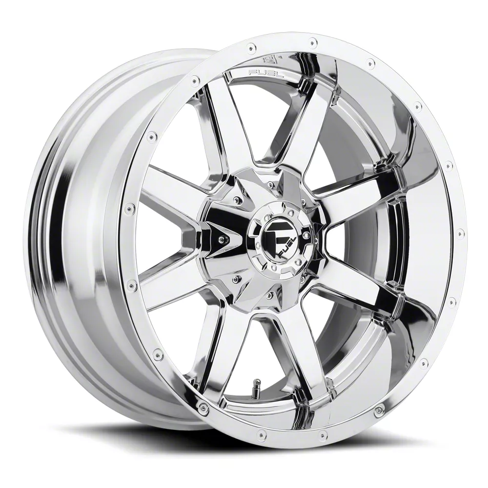 Fuel Wheels Maverick Chrome 8-Lug Wheel; 20x12; -44mm Offset - This wheel's elegant design will certainly enhance your vehicle's aesthetic, complementing its luxury and performance. The unique styling of this wheel makes it an ideal choice for a standout quality of your ride, reflecting the premium quality associated with the Fuel Wheels brand.