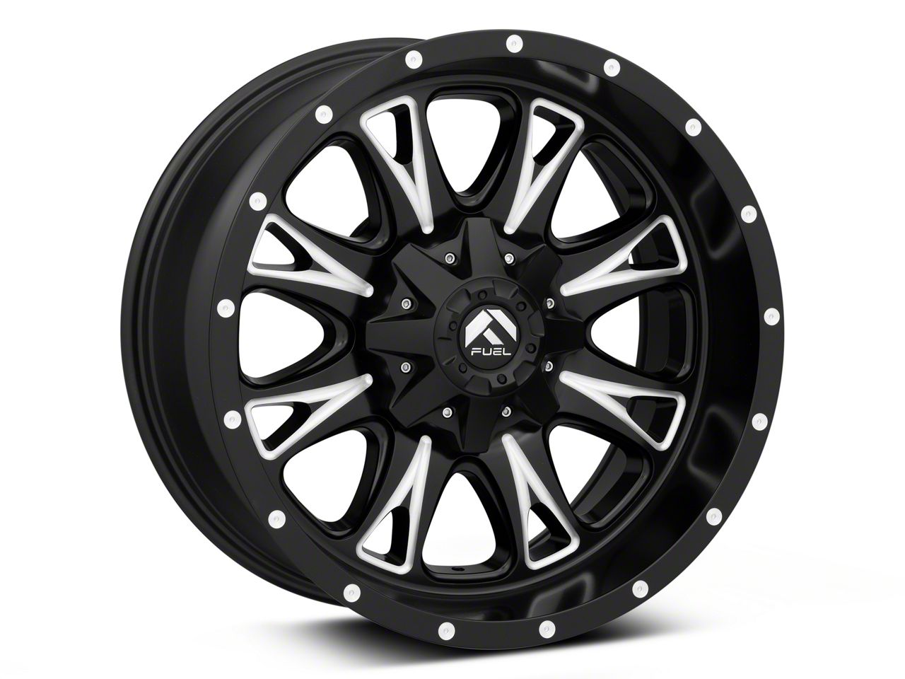 Fuel Wheels Throttle Matte Black Milled 8-Lug Wheel; 20x10; -12mm Offset - This wheel's elegant design will certainly enhance your vehicle's aesthetic, complementing its luxury and performance. The unique styling of this wheel makes it an ideal choice for a standout quality of your ride, reflecting the premium quality associated with the Fuel Wheels brand.