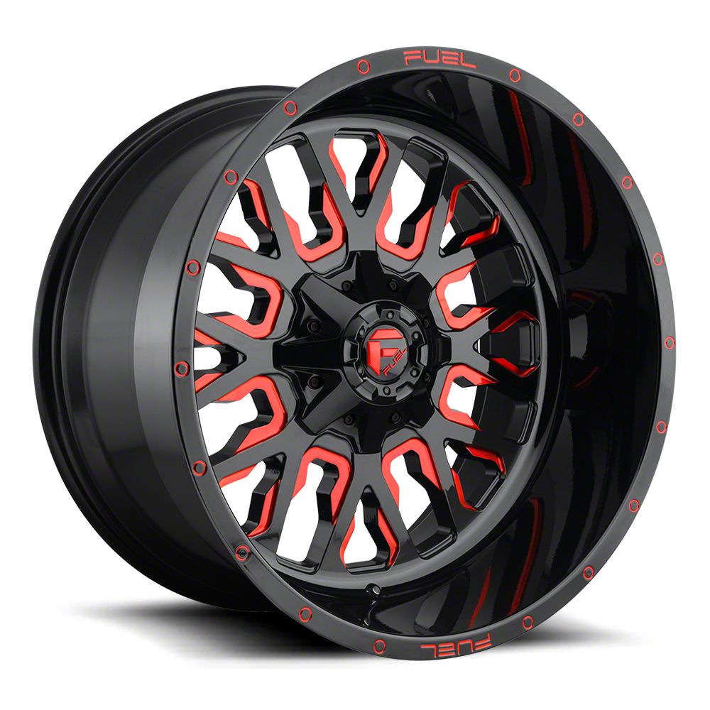 This 20x9 Fuel Wheels Stroke Gloss Black and Red 8-Lug Wheel is completed in a high-quality finish that will make your wheel the envy of everyone. There's a durable clear coat to ward off driving hazards.