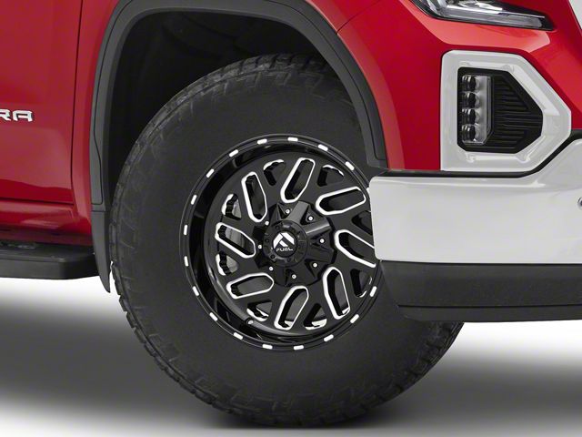The 18x9 Fuel Wheels Triton Gloss Black Milled 6-Lug Wheel; 18x9; -12mm Offset is given a gloss black finish to keep your wheel looking as sharp as its design. This wheel’s milled steel accents are where it really shines through, and quite literally. It makes the split section of the spokes pop and adds great accents along the faux beadlock.