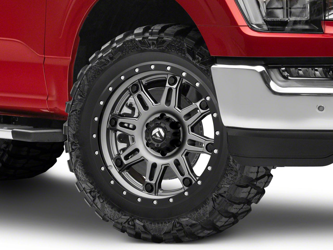 Application. This Fuel Wheels Hostage III Gun Metal 6-Lug Wheel; 20x9; 1mm Offset with a backspace of 5.04 Inch, 128.1mm and bolt pattern of 6 x 135mm (6 x 5.31-Inch) is meticulously engineered to enhance alignment and driving stability. It is designed to fit 2021-2026 F-150 models. Sold individually.